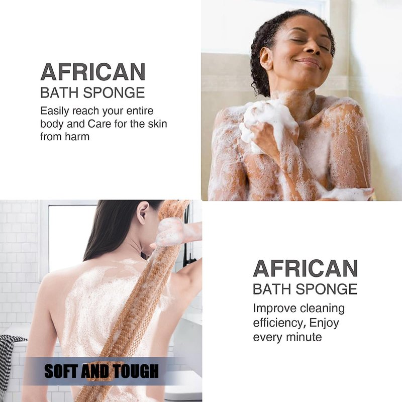 - 【Good rebound and stretch】African mesh sponge is elastic and stretchable and will be longer when stretched, making it perfect for cleaning all areas of the body without dead ends, including the back, hands and feet.