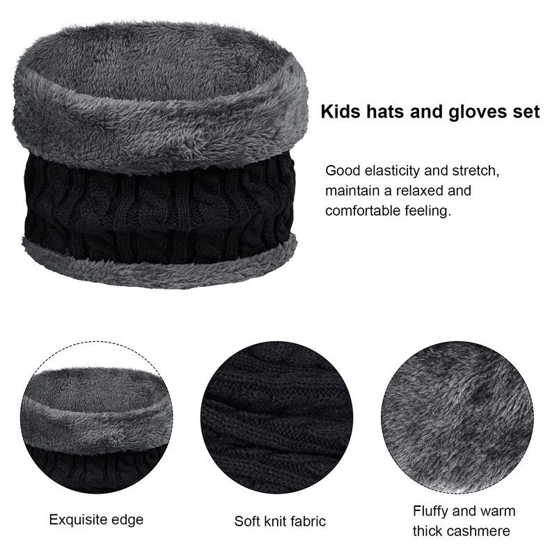 3Pcs Kids Winter Hats and Gloves Set Knit Fleece Lining Warm Hat and Gloves for Boys Girls Circle Scarf