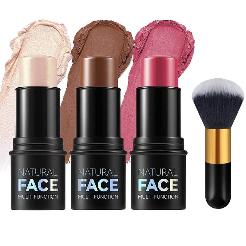 - 🙎Package Including: 3 Pcs Cream Contour Stick (#2 Highlighter Stick, #5 Blush Stick,#6 Bronzer Stick) with a brush.