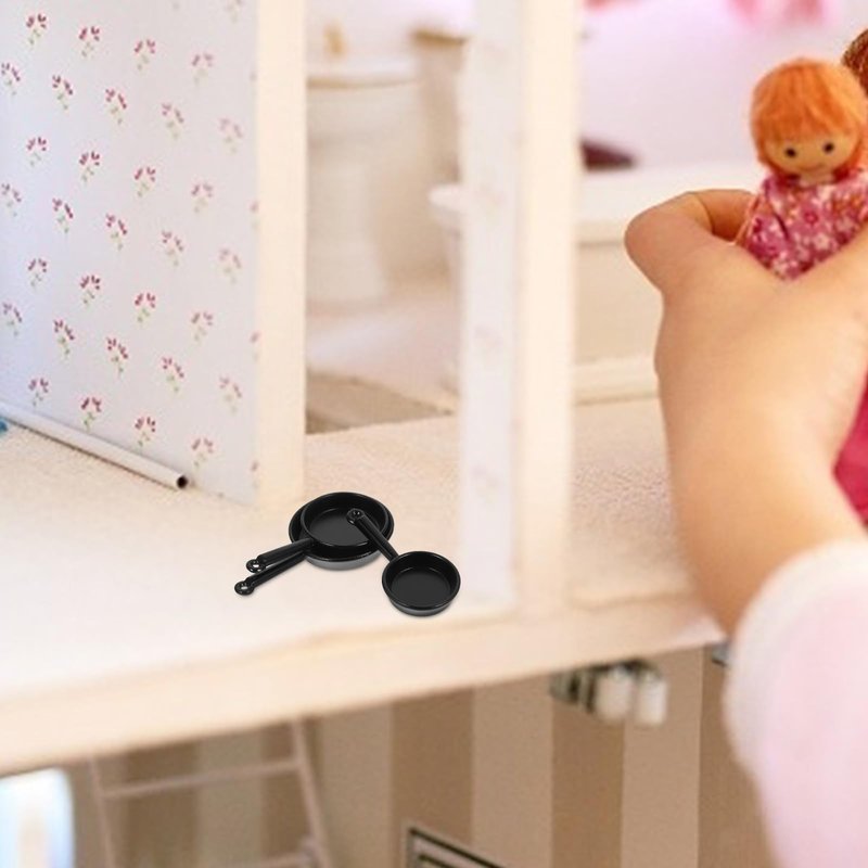 - DOLLHOUSE MINIATURE FRYING PAN Adorable cookware pans accessories shape design make it more attractive and will add a fun atmosphere to you doll house ornament