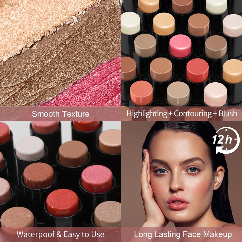 - CONTOURING THE FACE — The combination of a bronzer stick and a highlighter stick accentuates features and reduces the contours of the face. While the multi-use blush stick enhances the skin tone for a soft, monochromatic look. In just a few minutes, this face stick set will give you a flawless, sculpted look.