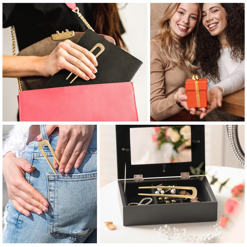 - Fashionable and Easy to Use: The U shape hairpin is in a simple French style and goes well with many hairstyles and clothes. You can use metal clips to help you create French twists, high buns, low buns, and more. The hair pin is smooth, goes on and off smoothly, and won't pull out your hair.