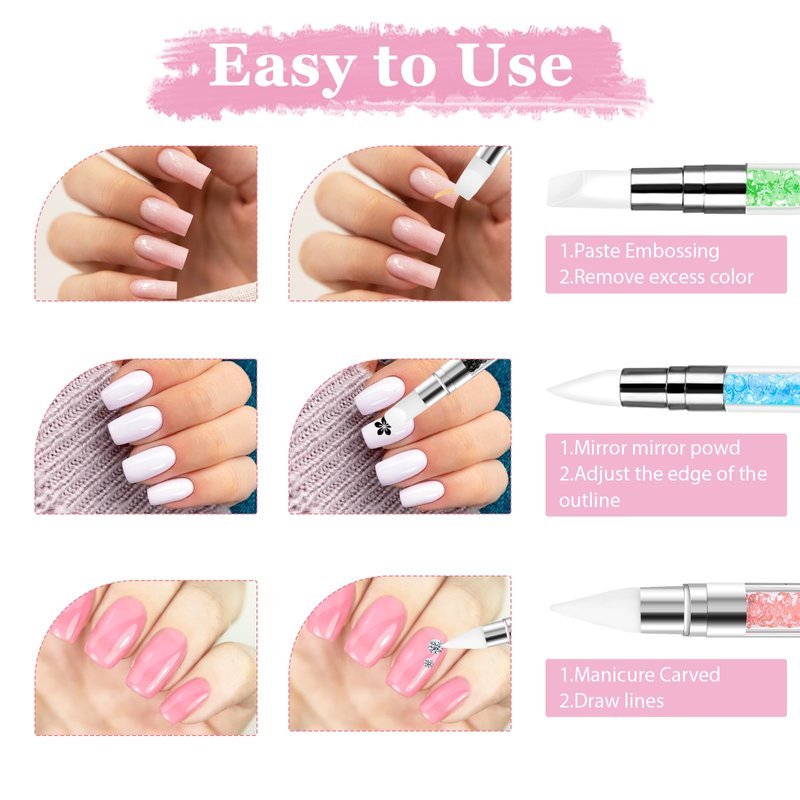 - 【Dual-Head Design】The innovative dual-head design of this silicone nail tools, one end is used for precise outlining and the other end is suitable for large area filling, which simplifies the switching of tools in the process of manicure, and achieves from the basic base to the details of the decoration in one stroke, so as to make your manicure work more convenient.