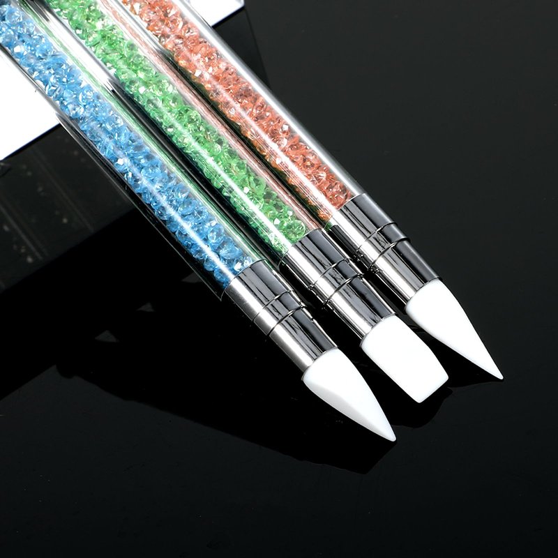 1 × Green Silicone Double-Headed Rhinestone Nail Pen;