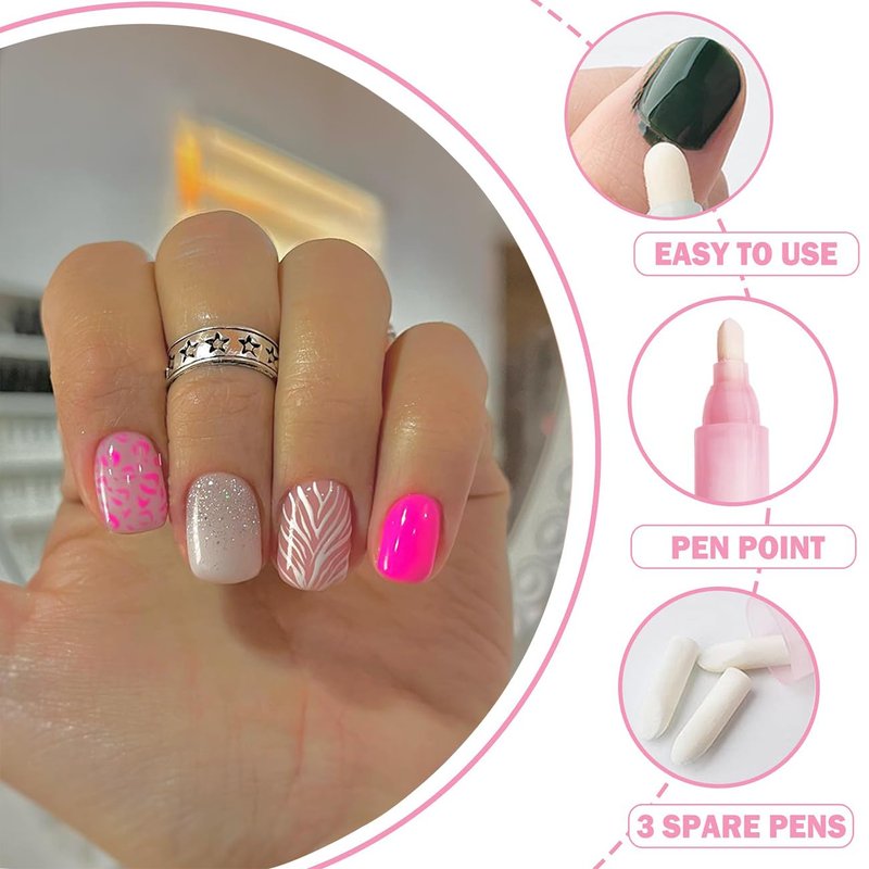 - How to Use: Pour the nail polish remover into the pen holder and install the pen tip to use, or directly dip the pen tip into the nail polish remover to erase the nail polish. It is an easy-to-use nail polish correction pen.