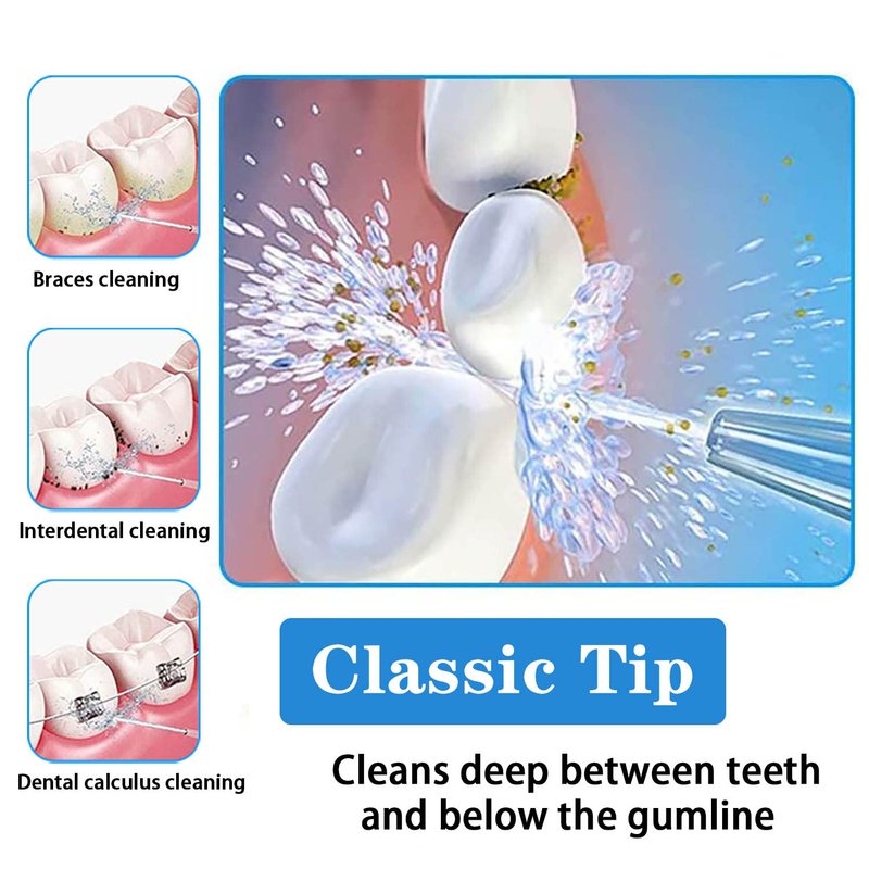 - Focused water column,0.6mm pulsewater column cleaning blindarea between teeth.