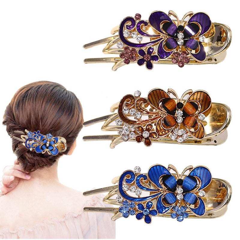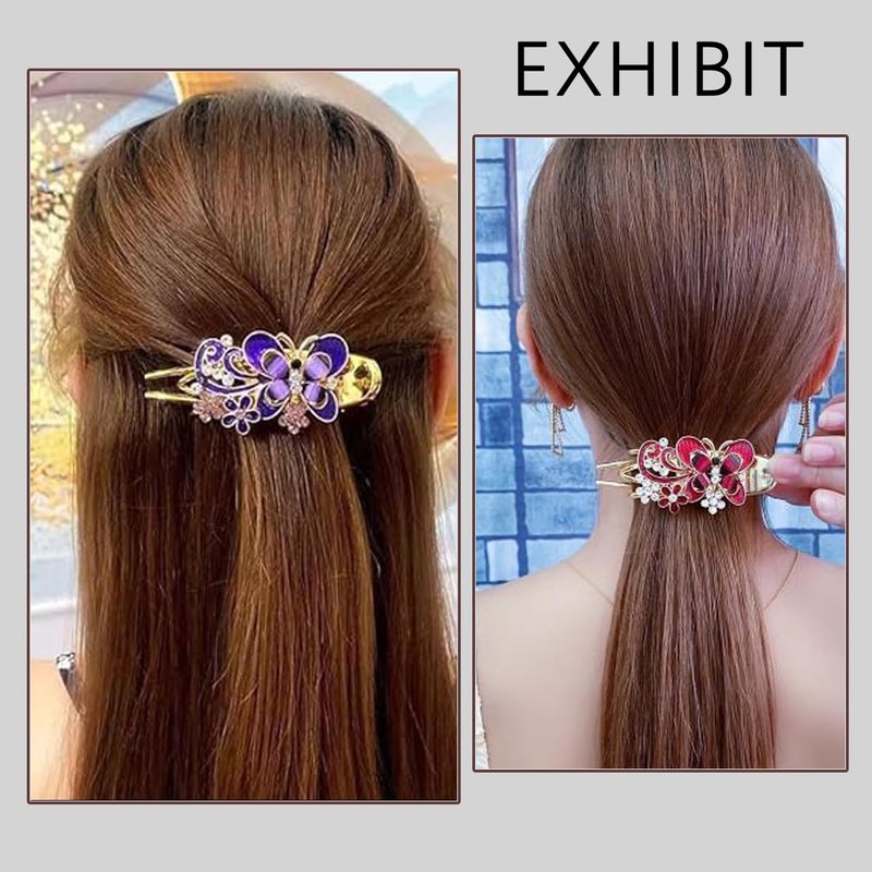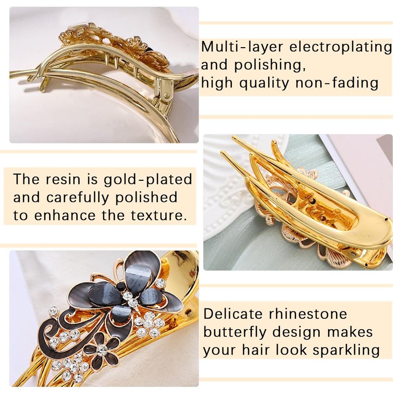 - 【QUALITY MATERIAL】 Made in part from electroplated gold acrylic and beautiful rhinestones, these butterfly hair clips look like metal hair clips and the large rhinestone clips hold your hair comfortably. They are strong and durable. The bottom clip is made of resin material, which is not easy to break and non-slip.