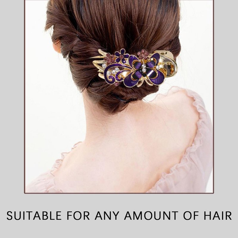 - 【CRYSTAL HAIR CLIPS】The length of the hairclip is about 9.5cm/3.75'' , the height of the hair claw is about 3.8 cm/1.5''. The lower parts of the hair clip are designed with teeth and hair combs, and the curved duck bill arcs are ready to fix more hair.It has rhinestones on it. Exquisite butterfly shape, very elegant ,to pull your long hair up, adding your hairstyle an extra elegance and charm.