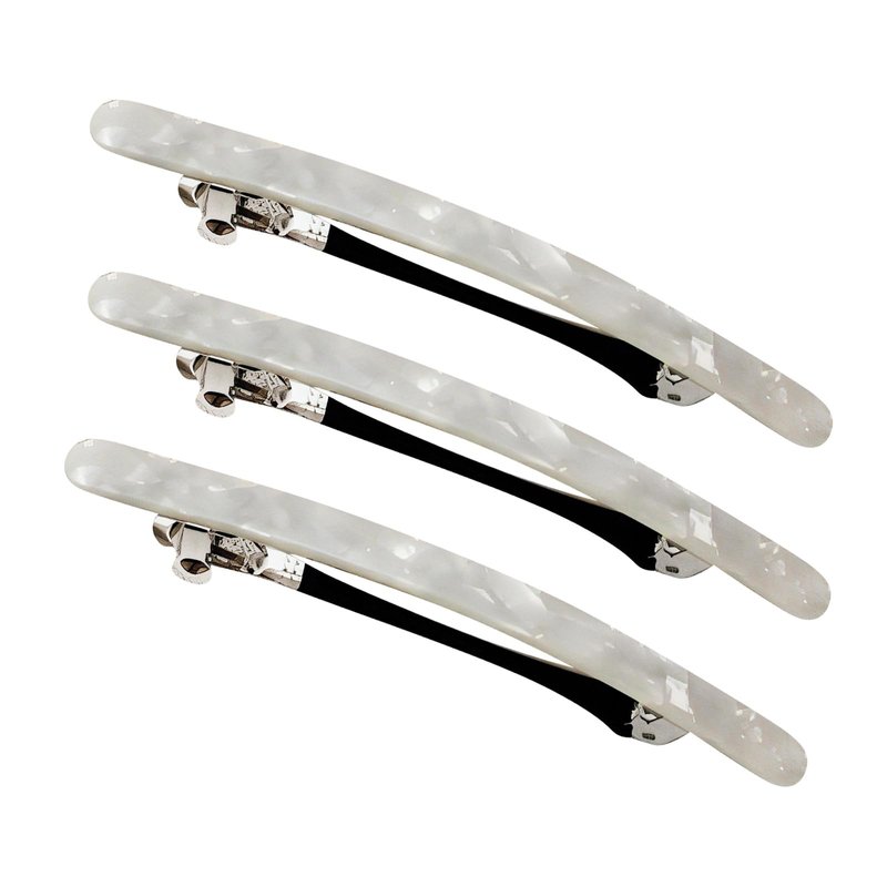 3 Pcs Shiny Bow Slim Tortoise Shell Celluloid French Barrettes Flat Acrylic Hair Clips For Thick, Kinky, Voluminous Hair Strong Hold Cute Hair Styling Ponytail Holder for Girls (White)
