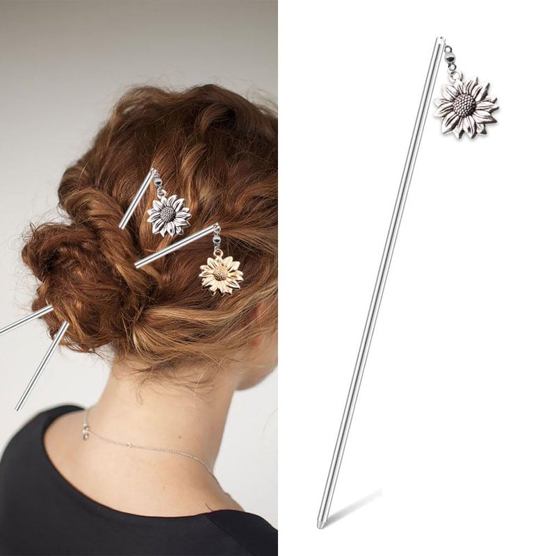 - There are 3 pieces of hair sticks with sunflowers in gold, silver and rose gold.