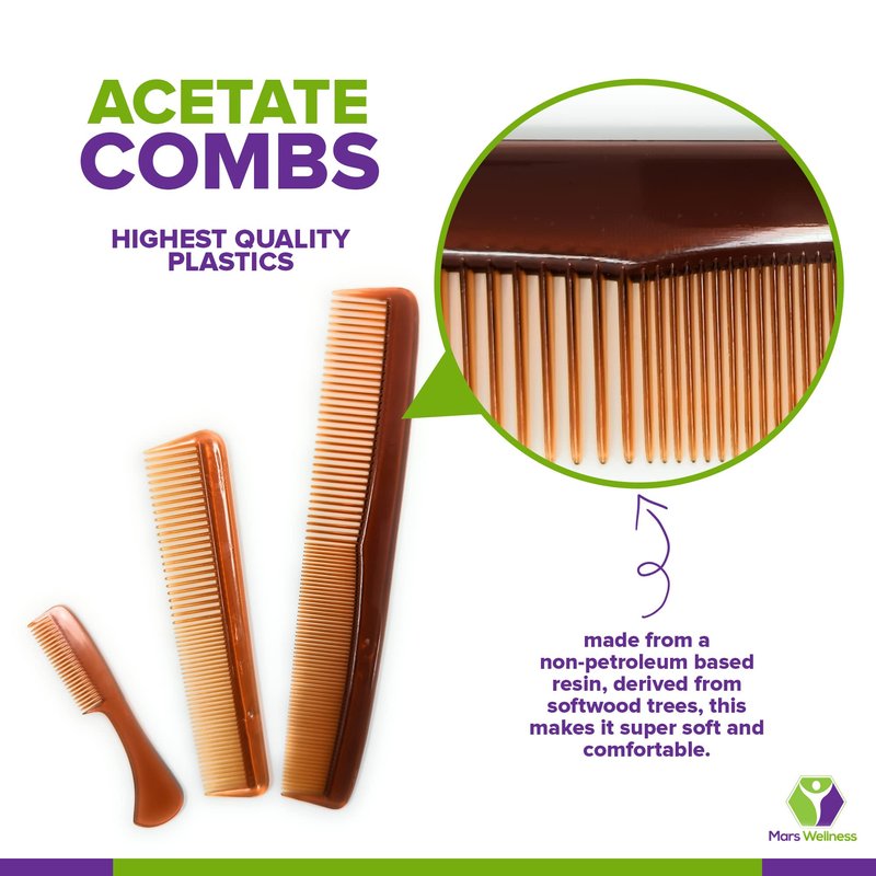 - PREMIUM QUALITY - Our Mars Wellness professional hair combs are designed and manufactured right here in the USA of the highest quality plastics and other materials, never compromising on quality. Our acetate combs are made from a non-petroleum based resin, derived from softwood trees, this makes it super soft and comfortable.