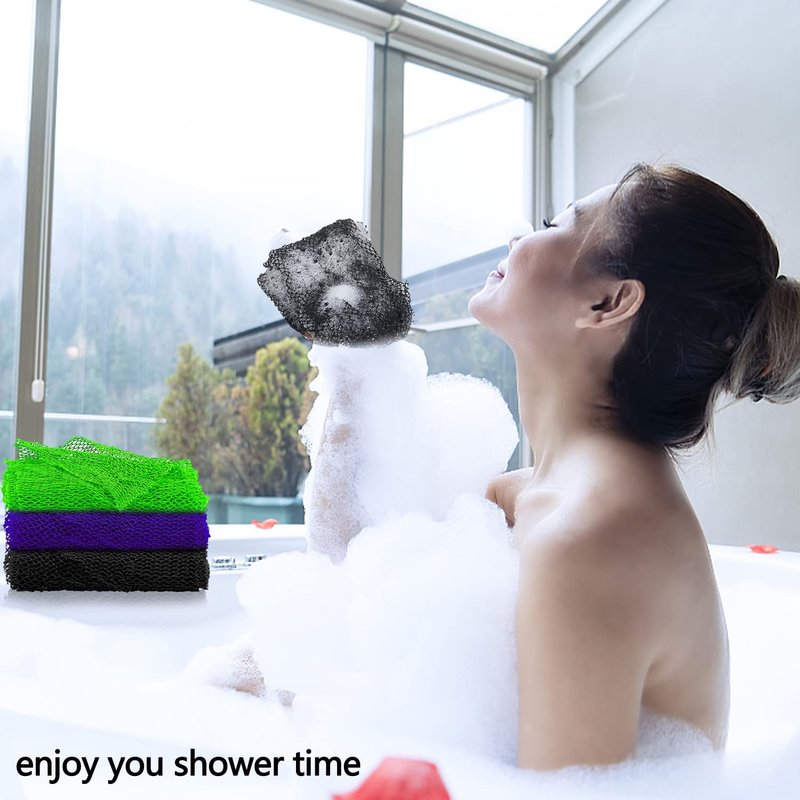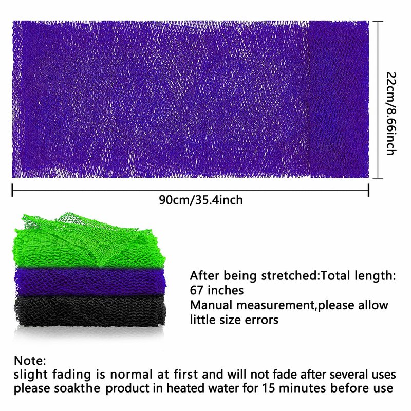 - 【Set Content】: 3 colors for you to choose, enough for you to share with your family, and use them as a substitute, different colors are easy to distinguish, no longer have to worry about mistakes in the bath net with your family. Note: Slight fading is normal at first, and will not fade after several uses. Please soak the product in hot water for 15 minutes before use.