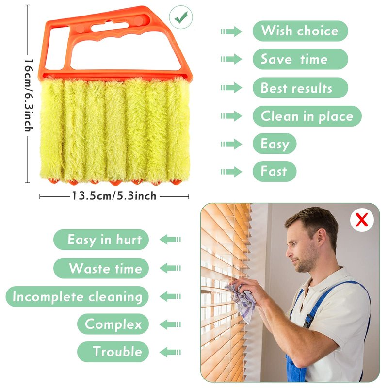 - Blind Cleaner Duster Tool: 7 slats, can clean six blinds at once; Designed according to the shape of the hand, increase the grip of the brush in the hands, easy to control the brush with the shutter blade close contact, compared to the towel, cleaning efficiency increased more and more.