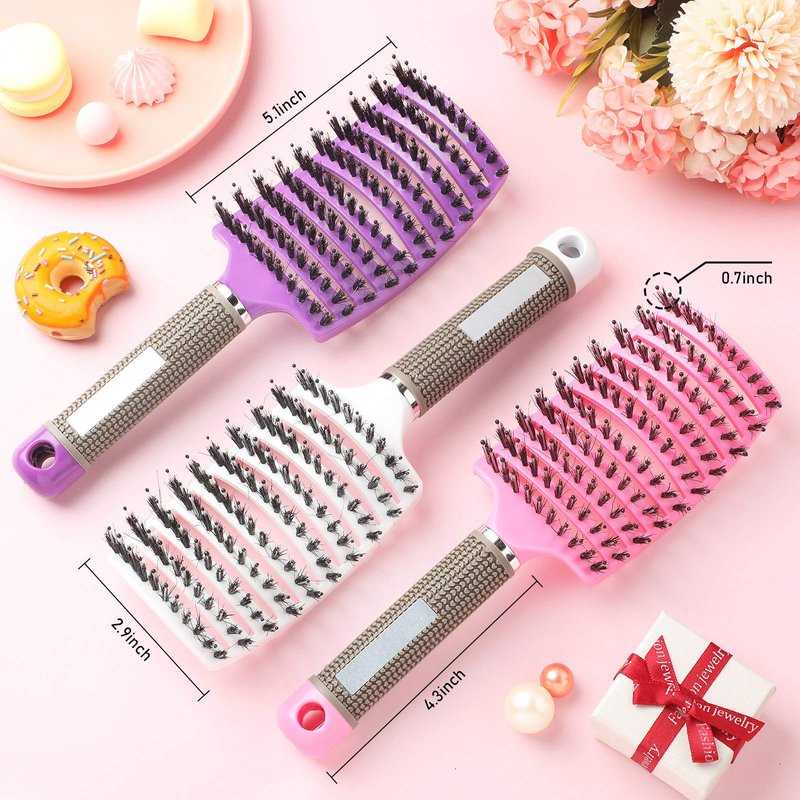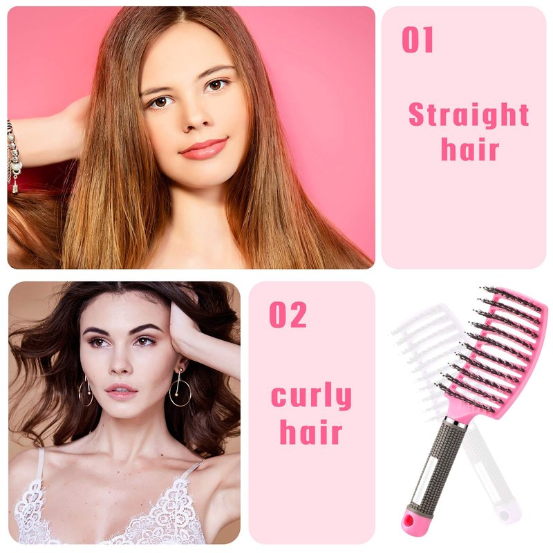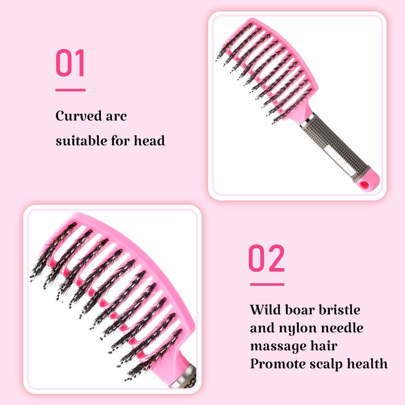 - Boar bristles design: the brush part of the curved vented hairbrush is made of boar bristles, beneficial to your hair; Dry hair and slender hair are knotted and fragile due to lack of oil can take advantage of the boar bristles stimulating natural hair oils for better hair, during comb, the boar bristles can also help you clean excess oil, reduce the frequency of hair cleaning