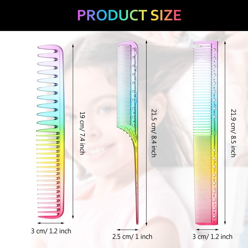 - Amount of packing: there are 3 pieces of hairdressing combs in rainbow color, including 1 piece of large tooth comb, 1 piece of fine cutting comb and 1 piece of rat tail comb, a nice combination for creating various hairstyles