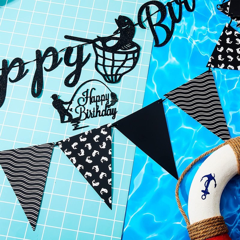 - What you will receive: you will get 1 piece glitter fishing birthday banner, 1 piece fisherman happy birthday cake topper and 1 strip of go fishing triangle banner; Enough quantity and beautiful decoration for assisting you to prepare an unforgettable and joyful party.