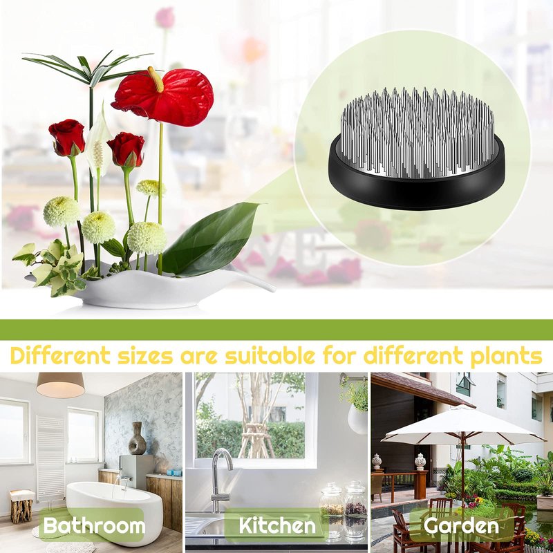 - Durable and sturdy needles: these needles on the flower frog are made of brass, sturdy and pointed, they are fixed on the base, can hold different flowers and branches stably in place, help you to display a beautiful and complete scenery of your plants