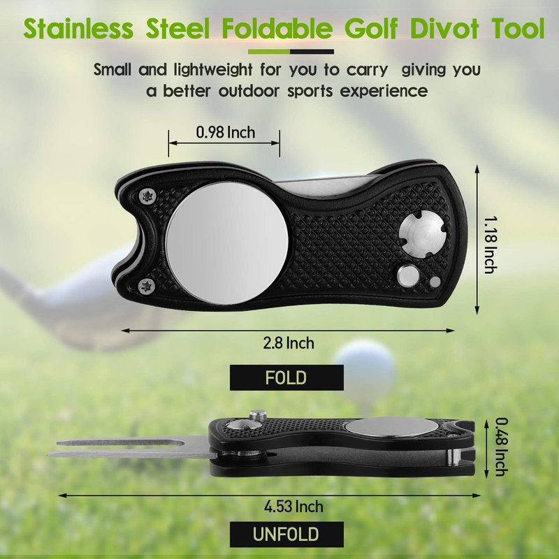 These foldable golf repair tools with pop-up button are suitable for golfing, golf course, green, etc., helping clean fix divot and assist you in playing golf.