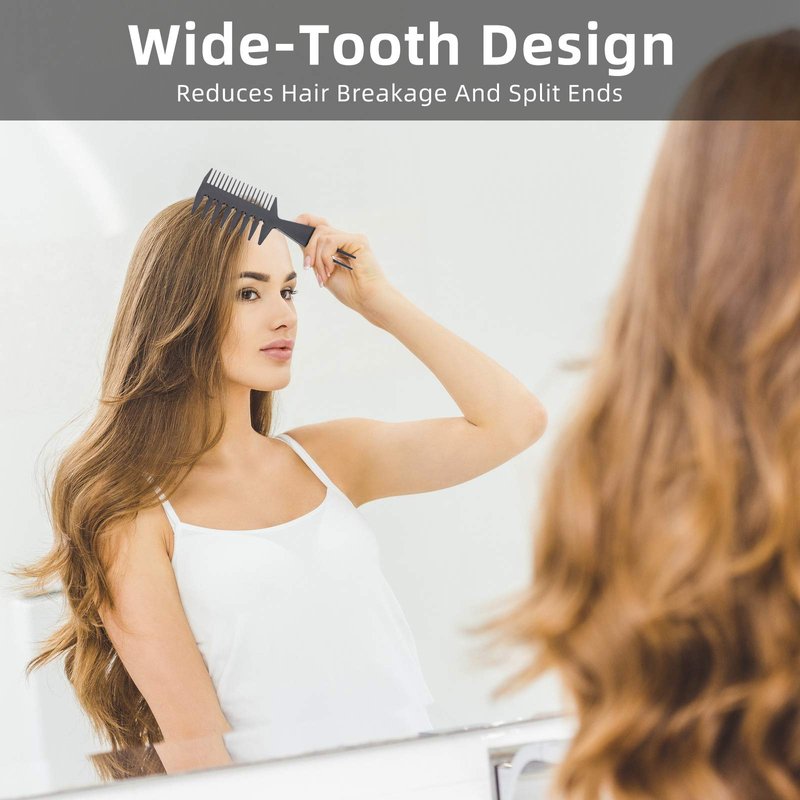 - "Wide tooth hair comb: besides the tri-comb, there are also 2 different combs with wide tooth to satisfy your needs, which can reduce hair breakage and split ends, thereby promoting smooth hair and reducing frizz"