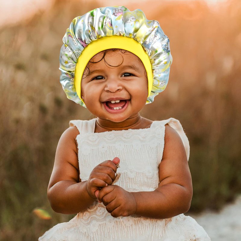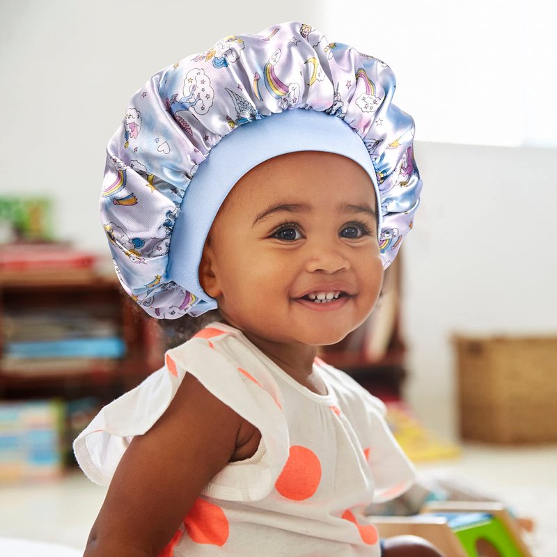 AILEAM unicorn satin bonnets are HANDMADE with breathable and silky soft satin. Satin is the best way to protect hair while your kids sleep and provide a breathable way to keep your child’s hair in place. Sleeping with a bonnet at night helps your child’s hair to retain moisture and prevent breakage.