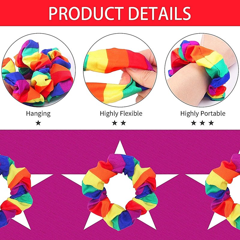 - 🌈[ Wide Applications ] Scrunchies for hair are suitable for different hairstyles like ponytails, half-up, half-down, buns, etc. Can be applied on various occasions, including Gay Pride Day, rainbow parades, pride parties, birthday parties, parties, weddings, carnivals, cosplay costumes, or other events. Wonderful gifts for family or friends.