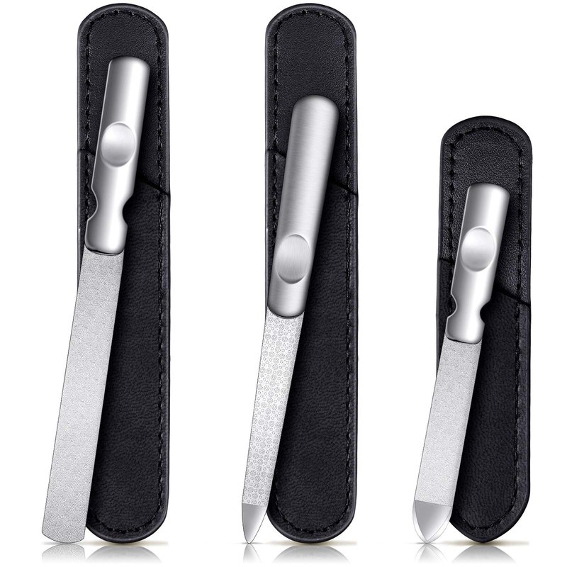 - What you receive: comes with 3 pieces stainless steel nail files with leather case, designed with double sides and different heads, including pointed head and round head, easily cater to your needs, the leather case is attached to provide protection when it's not in use, won't scratch your other accessories or hurt your hands