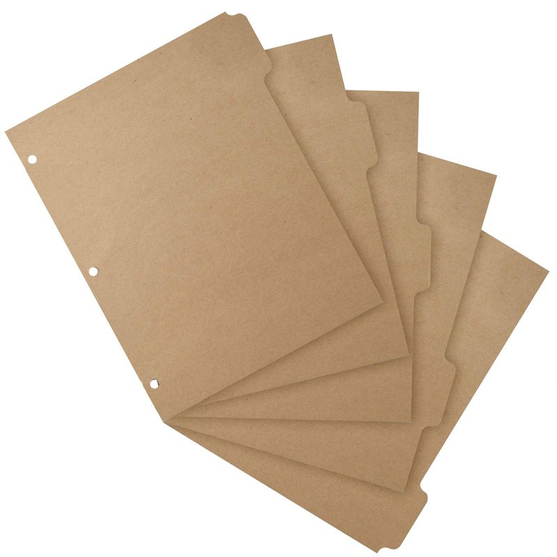 - 3 Ring 5 tabbed Kraft Paper dividers for keeping binders neatly organized and presentable