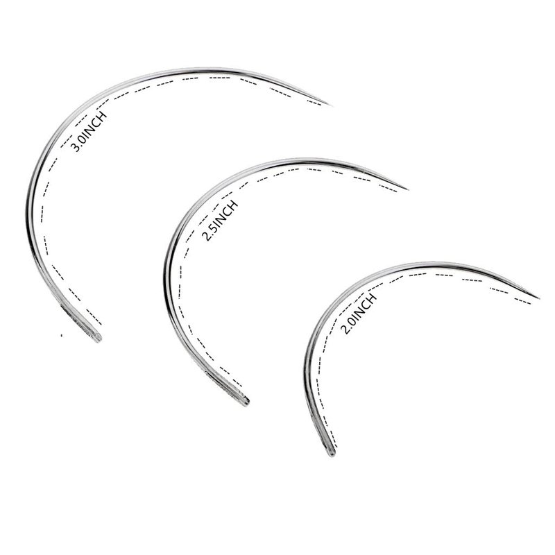 Package include: 3pcs Weaving Thread in 3 different colors black brown and beige .with 3pcs 50mm C Type Curved Needle