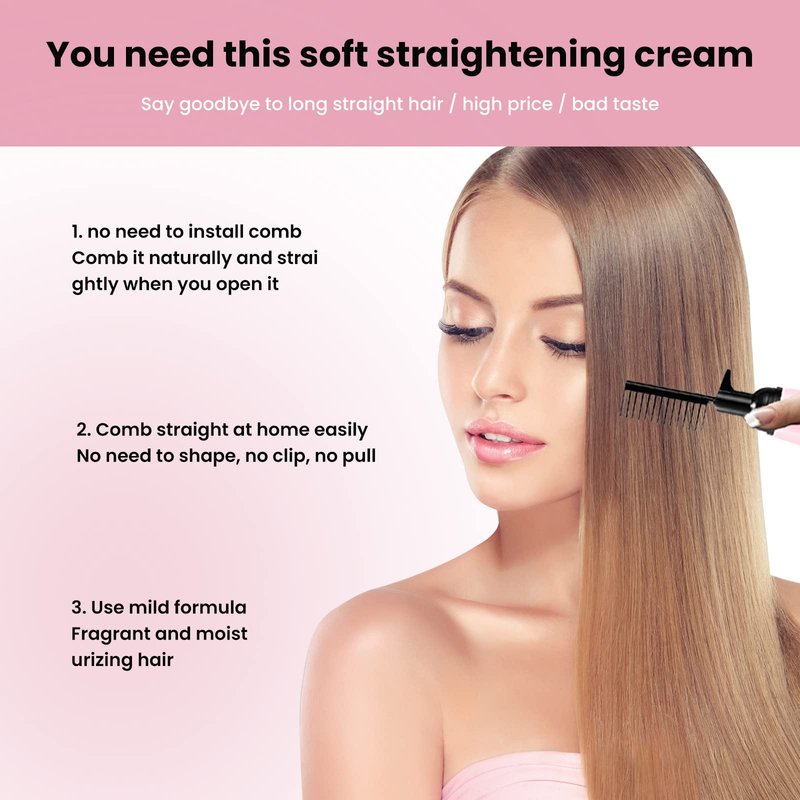 - ✅ Hair Straight Cream with Built‑in Comb - This 3-second hair straightening cream is a powerful combination of hair cream and comb in one handy product. The hair becomes straight after combing, straight silky look in just 3 quick steps.