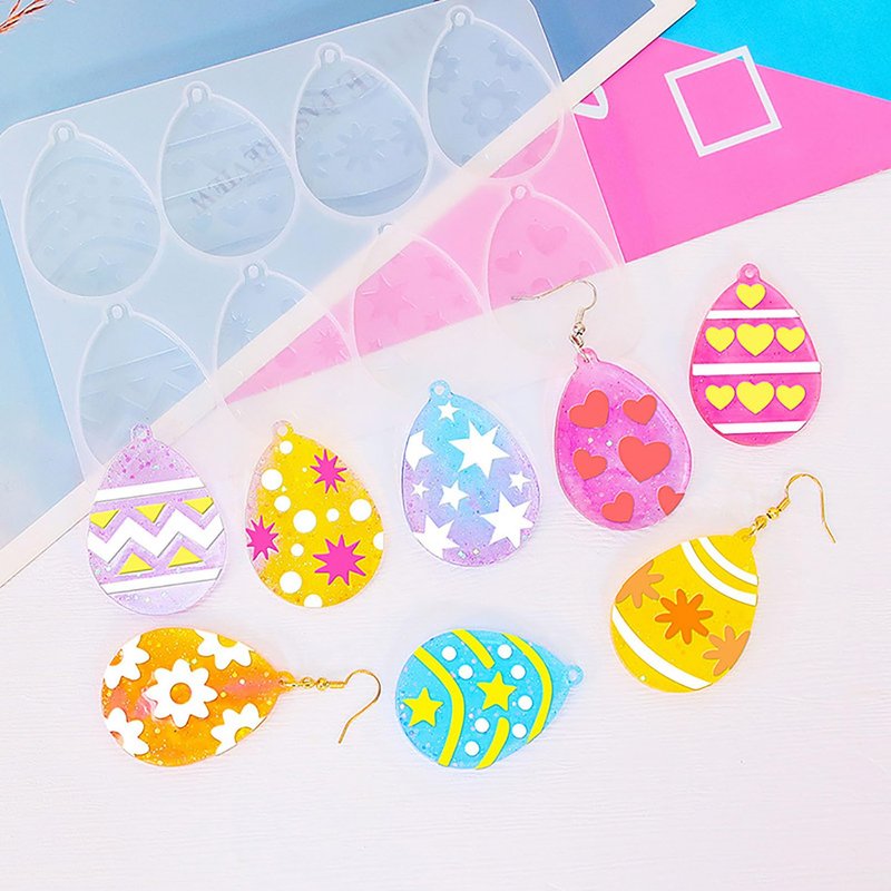3 Set Earrings Resin Mold Jewelry Silicone Molds for Epoxy Resin Easter Day Egg Shapes for Women Earrings Keychain Jewelry Pendant Craft Supplies Mould Earring Hooks, DIY Making Decor Art Crafts