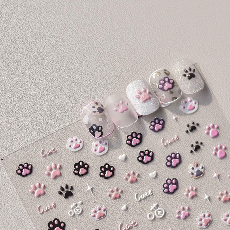 3 Sheets Cat Nail Stickers, Cute Nail Stickers, Cat Nail Decals, Cute Nail Art Stickers, Embossed Cat Claw Nail Stickers, Embossed, Cute Nail Supplies, Nail Art Stickers, DIY Nails