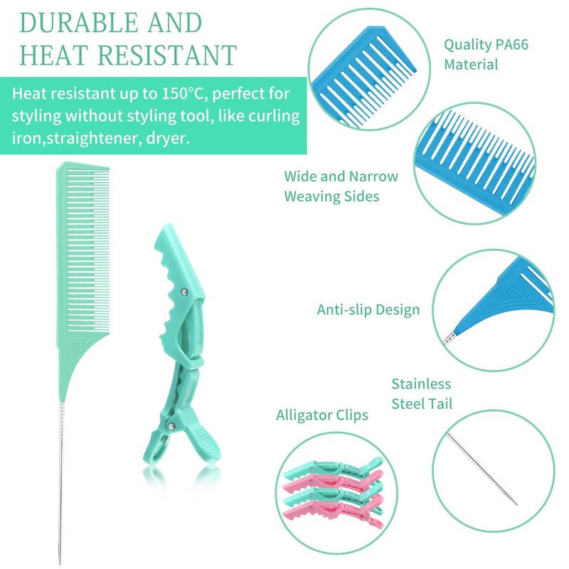 - 【Comfortable & Durable 】Highlight comb is made of premiun heat-resistant PC, anti-static, not easy to deform or break,long thin tip tail design, efficient and accurate for hair parting.