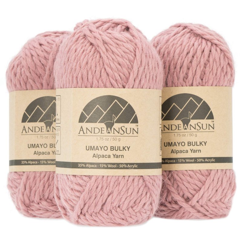 (3 Small Gorgeous Skeins) Alpaca Yarn Blend Umayo [165 Yards Total] Pink Mauve, 5 Bulky