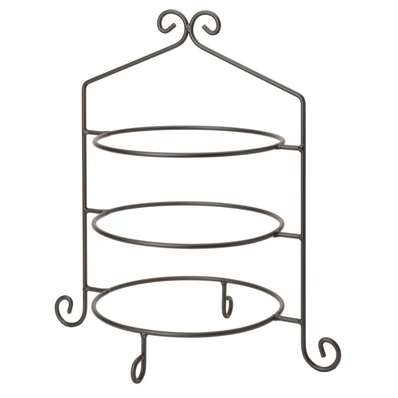 3 Tier Pie Plate Stand - Solid Satin Black Wrought Iron Triple Rack Display Amish Handmade in USA