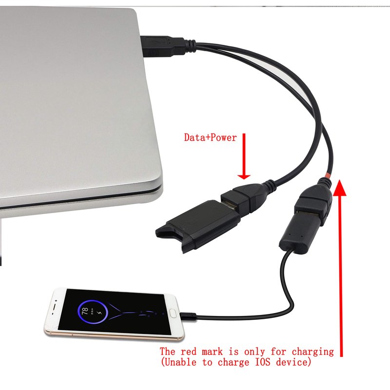 - The cable of the USB data adapter can solve the problem that the USB port cannot provide enough electricity, thereby solving the problem of the low electricity consumption USB port (such as PC, hard drive, etc.)