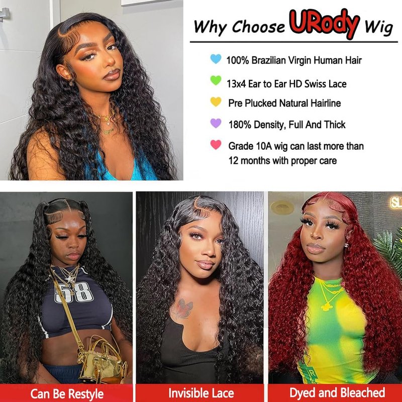 - Deep Wave Wig Human Hair Advantage:Wet and Wavy Lace Front Wigs Human Hair,No Smell,Soft,Shedding Free,True To Length.Can Be Dyed and Bleached,Straightened and Restyled,Can Be Side Part,Middle Part,High Ponytail and Bun,Styled As You Like.If Care Well,Can Last Longer