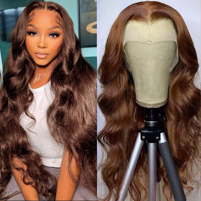 - Brown Body Wave Lace Front Wig Material: 100% Unprocessed Virgin Human Hair No Mixed Hair; No Shedding and Tangle-free; Soft and Natural; Healthy and Vibrant; Comfortable Against Skin; Can be Straightened Colored and Restyled