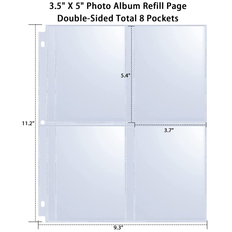 - DOUBLE-SIDED PHOTO ALBUM REFILL PAGES -Our photo sheet protector provide double capacity that you can put total 8 photos in both sides of the sheet. All 30 pages provide total 240 pockets capacity. They are perfect for holding standard 3.5x5” pictures and postcards