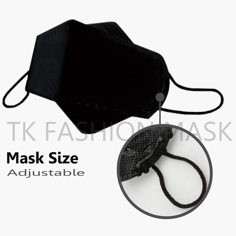 - TK FASHION MASK KF94: [COMFORTABLE ERGONOMIC DESIGN] : The unique 3D ergonomic structure tri-folding design provides a closer, more secure fit around nose and cheeks and under the chin.