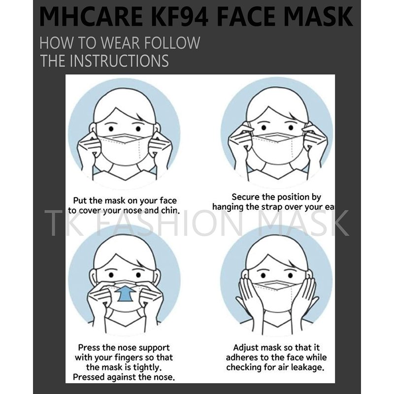 - TK FASHION MASK KF94: [PREMIUM QUALITY] : All materials are made in Korea with premium quality by MHCare. Tri-folded structure and hygienic individual packaging.