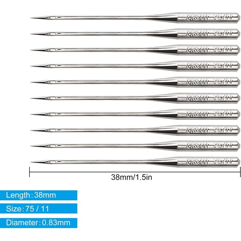 - ★ The size of HOLAN sew machine needle is 75/11. Perfect for sew thin fabrics. Such as chiffon, fine cloth, thin cotton, warp knitted fabric, shirt cloth, plain cloth, artificial cotton