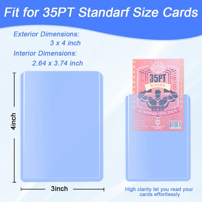 - 【Sturdy Clear Material】: Hard plastic card sleeves for trading cards are constructed of high-end quality and hard PVC which is scratch-resistant, acid-free, sturdy and durable. High clarity let you read your cards effortlessly. It is an ideal choice for protecting your precious cards and photos.