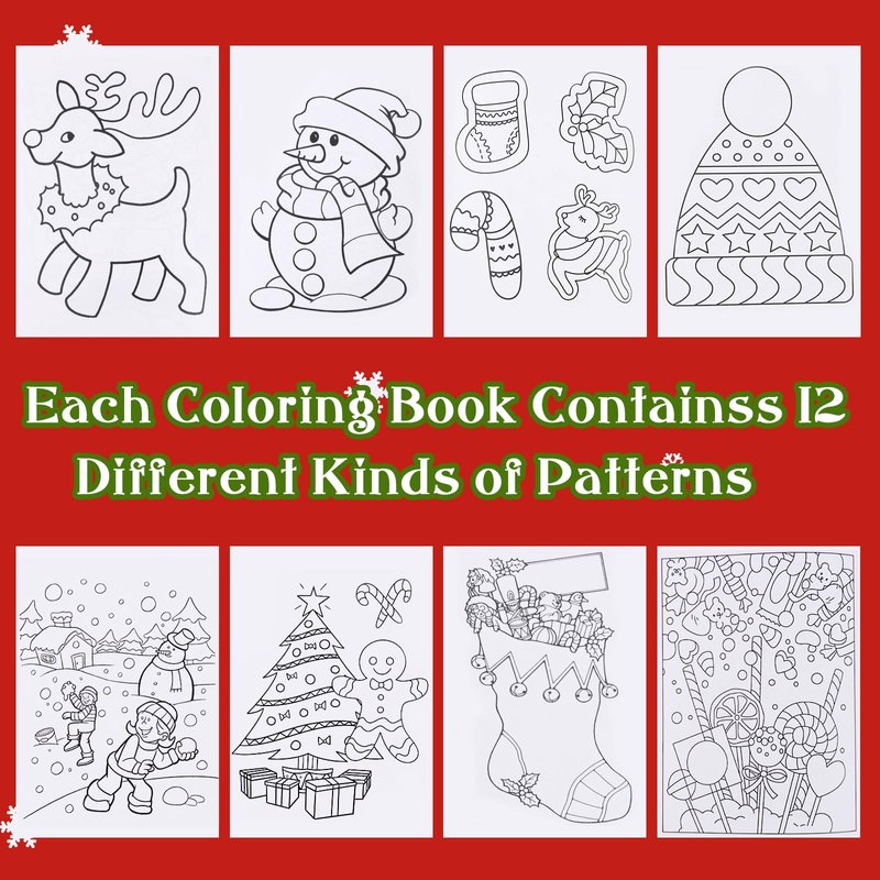 - 🦌30 Pcs Christmas Coloring Book Set: There are 30 Pcs Christmas coloring books for toddlers in 6 styles in a package, each book is double-sided printed with 12 pages of different patterns. Lovely patterns include Santa Claus, Christmas trees, snowmen, reindeer, Christmas scenes and more, filled with Christmas themes that combine the magic of the holiday with fun creativity. Both boys and girls will love them
