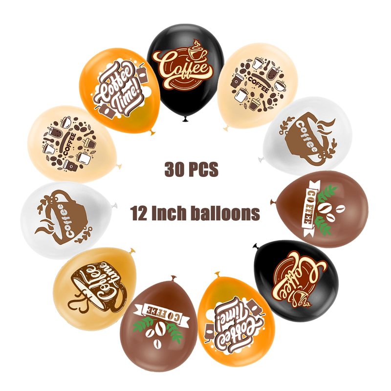 30 PCS Coffee Balloons, 6 Styles of Coffee Themed Balloons for Coffee Party Supplies Coffee Birthday Party Decorations