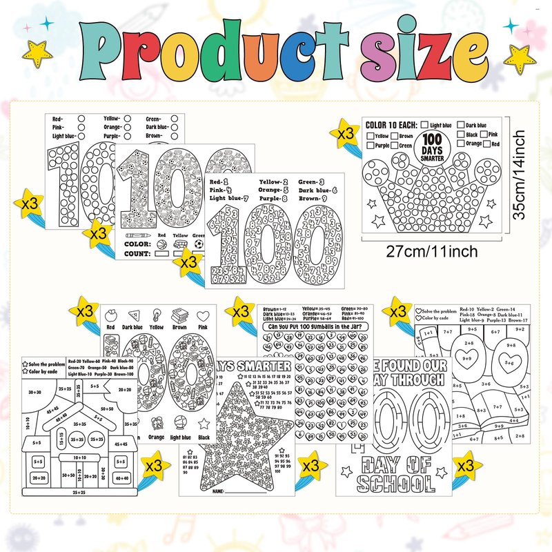 - Premium Coloring Poster: Our 100th day of school coloring activities are made of sturdy paper, no odor, not easy to tear, 11X14 inch suitable size allows you to easily play various games on the poster with crayons, perfect for children's classroom activities