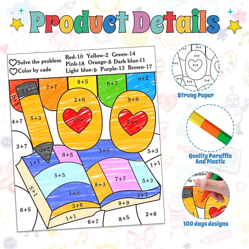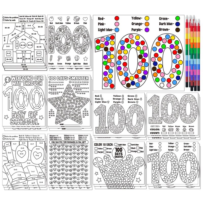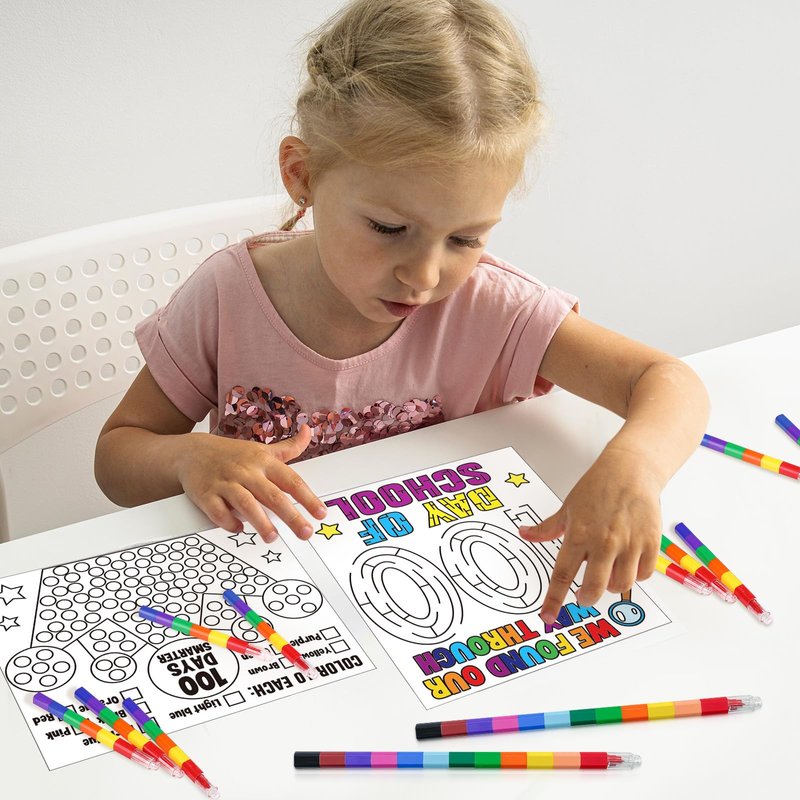 - Package Includes: the 100 days of school coloring poster kits including 30pcs of happy 100th day coloring activities poster and 6pcs of stacking crayons in 12 colors; rich in quantity and styles to meet children's need for DIY coloring during the back to school season