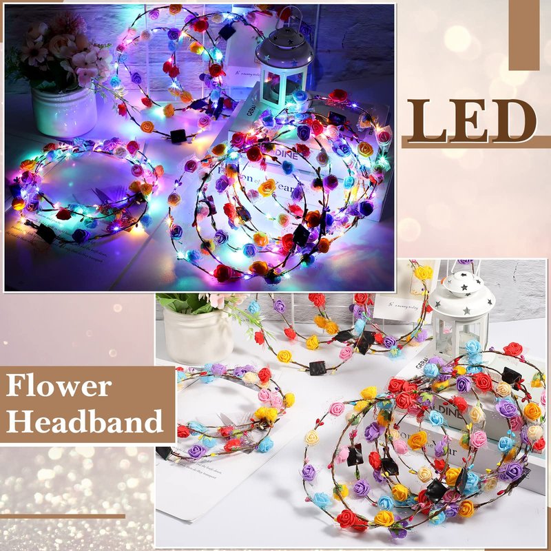 - Secure and Reliable Material: the LED flower crown is mainly made of plastic material, secure and comfortable to wear, light in weight, and won't burden your scalp, the flower can be firmly fixed on the crown and not easy to fall off