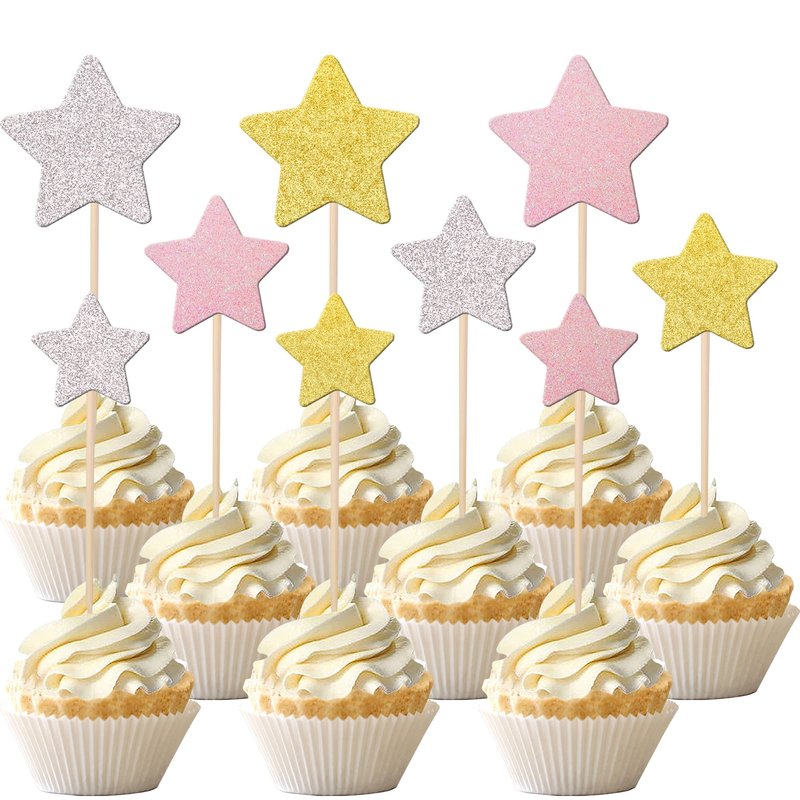 - Wide Usages ! Wide Usages ! These star cupcake toppers are perfect for wedding engagement party, bridal shower party, baby shower party,kids birthday party cupcake decorations,they can make your cupcake more attractive and bring the fun to your party.You can also apply them for ice cream, fruits, cookies and other desserts.