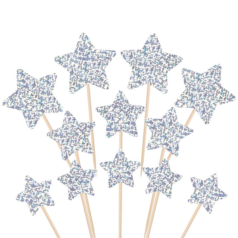 - Upgrade Quality ! Made of 300 gram glitter card stock and 100% food grade bamboo stick,not easy to deform and fade,smooth edges without burrs.they will be shine in the light, easily enhance the party vibes and draw attention of people.It is single glitter.