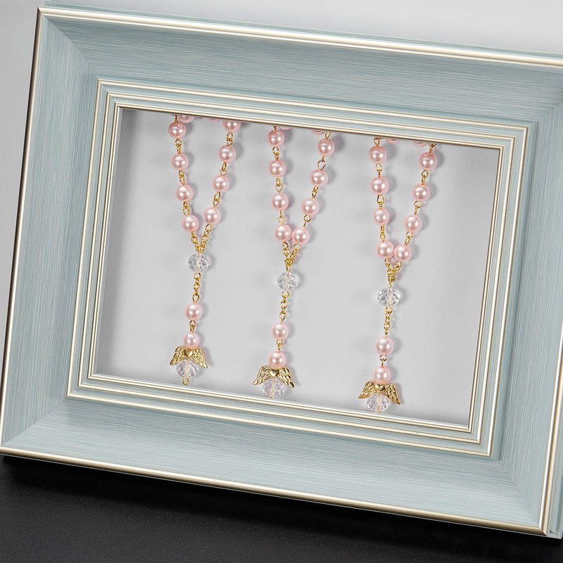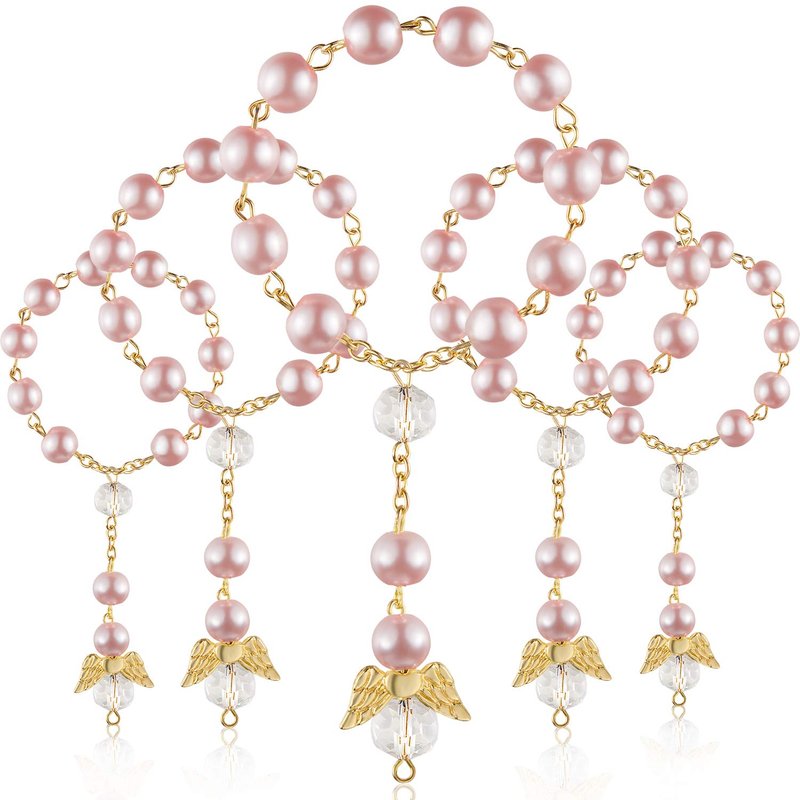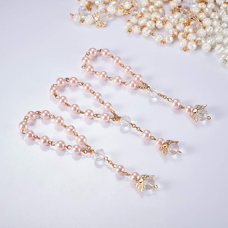 30 Pieces Baptism Rosary Acrylic Rosary Beads Mini Rosaries with Angel for The First Communion Baptism Party Favors (Pink Gold)